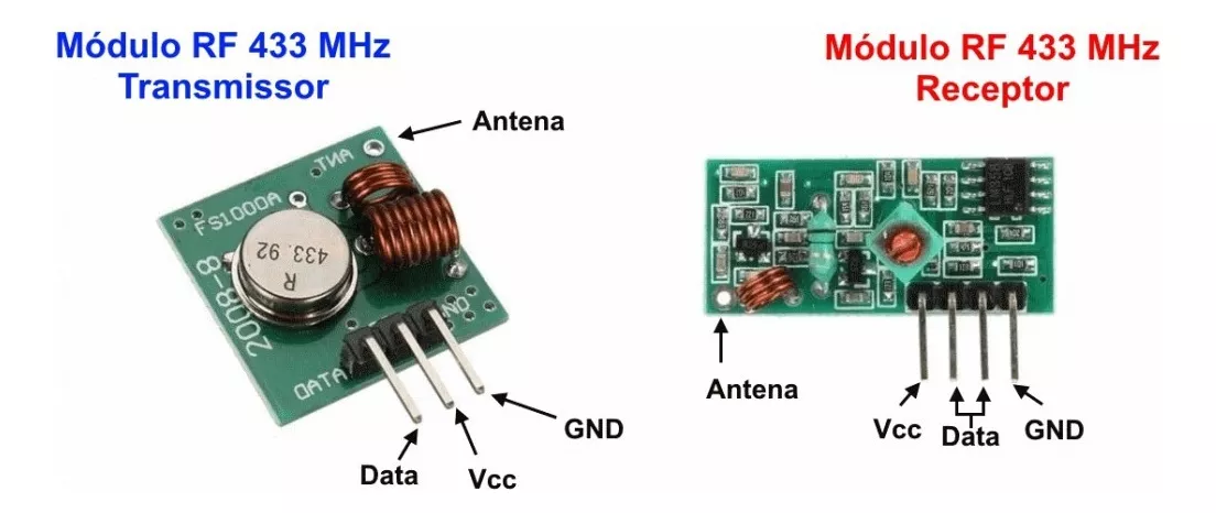 O conjunto Módulo RF Transmissor e Receptor 433MHz é ideal para projetos de automação residencial, robótica, alarmes e outros que necessitem de comunicação sem fio.