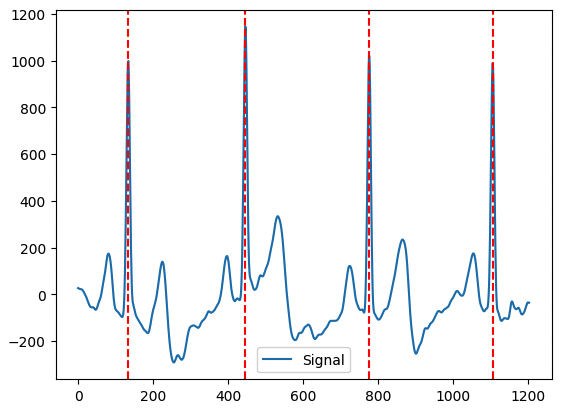 plot = nk.events_plot(rpeaks['ECG_R_Peaks'], cleaned_ecg)Output: